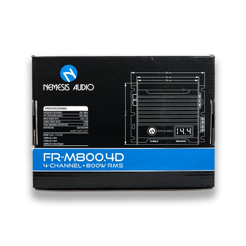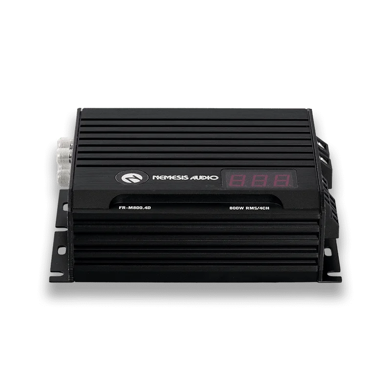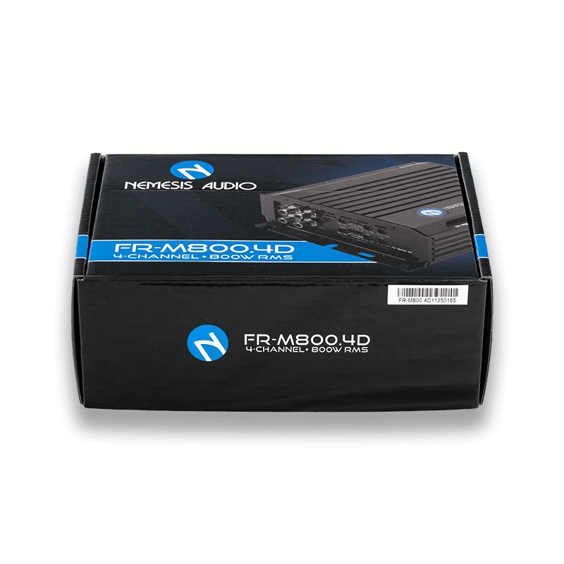 The Nemesis Audio FR-M800.4D is a compact yet powerful 4-channel amplifier designed for high-fidelity audio in space-constrained installations. Part of the FR Series, this Class D amplifier offers exceptional efficiency and clean power delivery, making it the perfect choice for upgrading your vehicle’s midrange and tweeter setup.