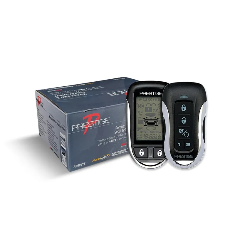 The APS997Z has been redesigned with the new metal chrome look and feel. This system offers a deluxe 2-way LCD command confirming 5-button transmitter, up to 1 Mile of operating range, the convenience of 24 hour start mode, cold temperature start mode, and illuminated entry mode as well as the safety of remote panic in all modes, protected valet, intrusion alert with memory and more!